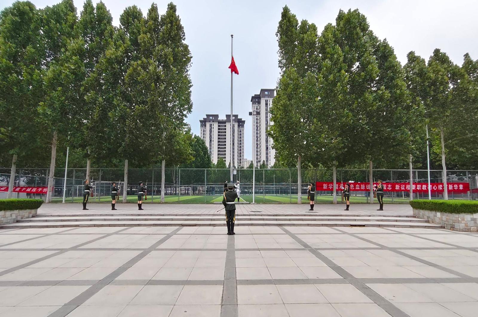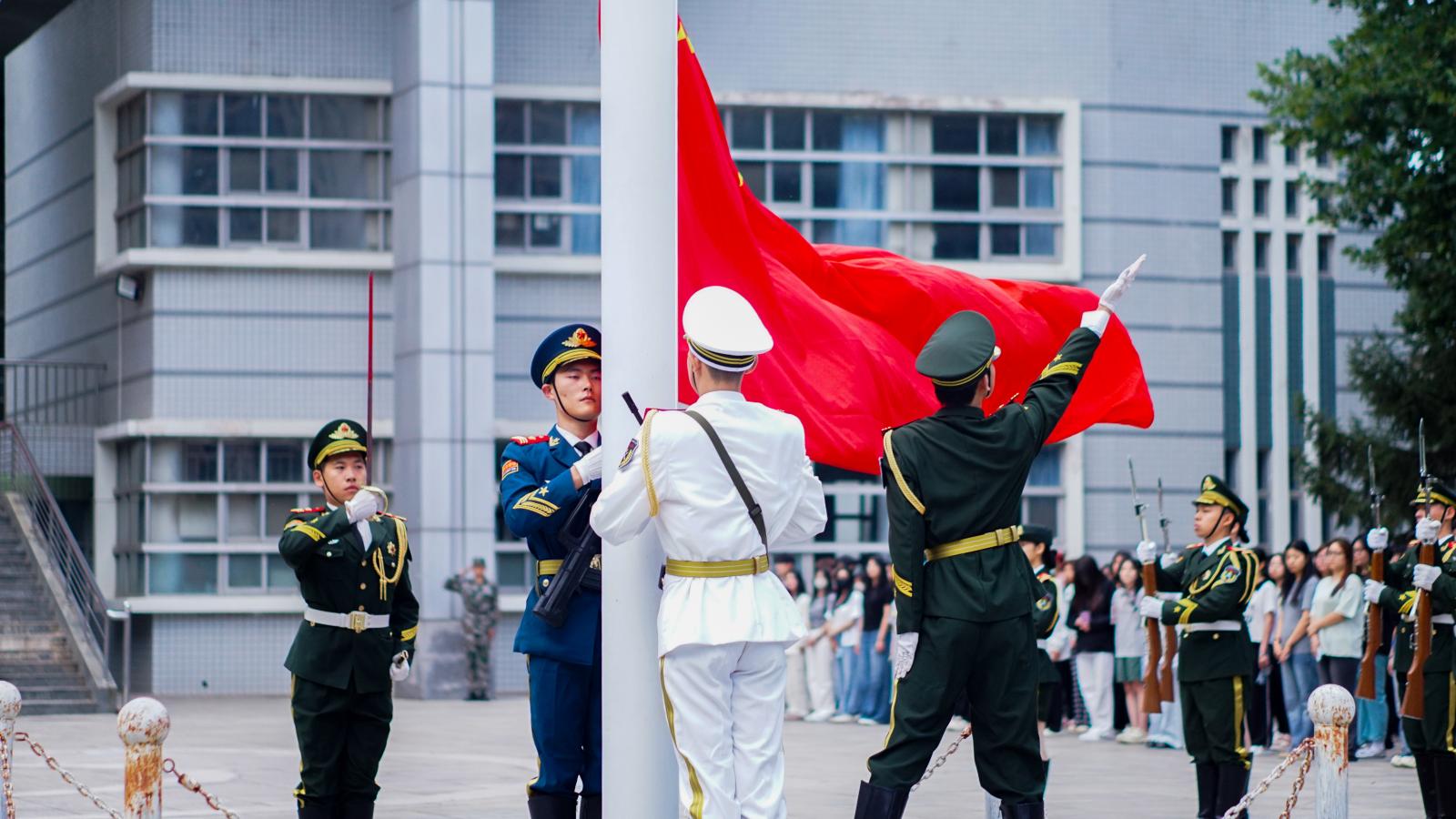 烽火记忆照前路,秋风为序启新程。今年是中国人民抗日战争暨世界反法西斯战争胜利80周年。早上6时30分,在全校师生的注视下,国旗护卫队员迈着整齐划一的步伐,护卫着五星红旗昂首挺胸地走向升旗台。当雄壮的国歌响起,鲜红的五星红旗像一团炽热的火焰,沐浴晨曦、冉冉升起,全校师生面向国旗庄严肃立,行注目礼。这一刻,我们缅怀历史、致敬英雄;这一刻,我们准备就绪,以崭新面貌开启新的一程。