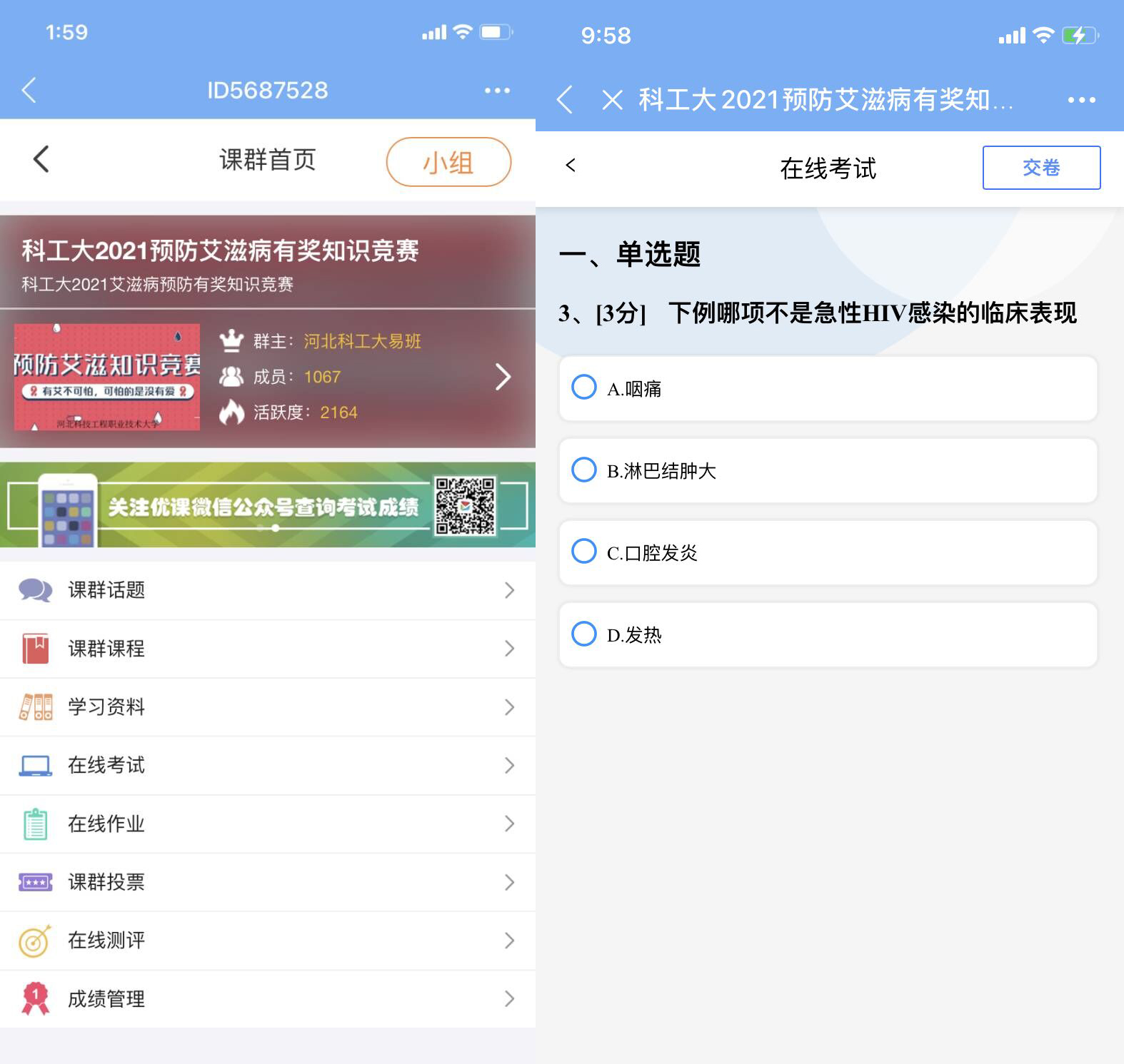 宣传活动以青春健康同伴社、学校志愿者协会、易班为主体,先后开展了艾滋病防控知识线上有奖竞答、防艾抗艾倡议签名、新媒体专项宣传、宣传彩页发放等活动。通过线上与线下相结合的方式实现了宣传全覆盖,通过学生喜闻乐见的宣传形式进一步提高了学生对艾滋病的防范意识、以及对相关知识的知晓率。