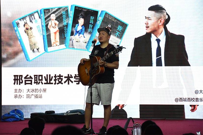 5月29日,由青年作家、主持人大冰发起的“大冰的小屋”百城百校音乐会走进我院。晚19点,音乐会在学院大学生活动中心举行,来自“大冰的小屋”歌手王继阳、陈一豆来到演出现场,全院200余名师生观看了演唱会。