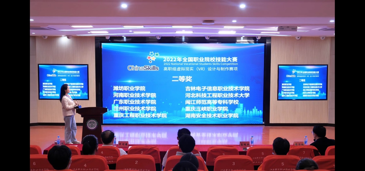 2022年全国职业院校技能大赛高职组“虚拟现实(VR)设计与制作”赛项于11月12日-13日进行线上赛,江西省南昌市线下集中评阅评分,来自全国各省市自治区的50支队伍参赛。由信息工程系徐振立和丁莉老师指导的王智璇、魏桐桐、李达3名学生组成的代表队,经过长达十小时的激烈角逐,最终获得二等奖的优异成绩。