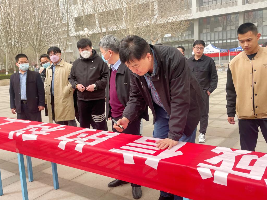 为加强新时代廉洁文化建设,涵养求真务实、团结奋斗的时代新风,3月22日下午,会计系于西区小广场开展廉洁校园签名活动。在系党总支书记石磊的带领下,全体教职工、学生会主要工作人员积极响应,在红色横幅上郑重签字,以廉洁之名,倡时代新风。