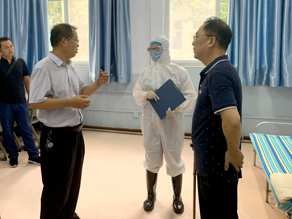 为确保学院2020年秋季学期师生身体健康与生命安全,维护正常的教育教学秩序和校园稳定,依据学院秋季开学工作应急处置预案,8月28日下午,学院开展学生报到后校内疫情防控应急处置演练。学院党委副书记张双会、副院长褚建立到场指挥协调,学院防控办、后勤管理处、学生工作处、安全工作处等相关职能部门负责人及各系党总支书记、副书记参加观摩了此次演练。