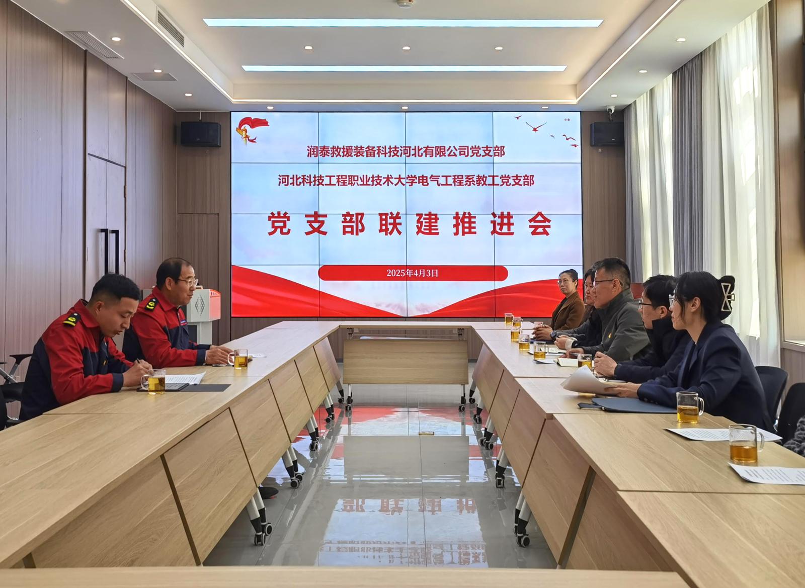 为深入贯彻《教育强国建设规划纲要(2024—2035年)》关于深化产教融合的部署要求,落实学校党委《2025年党建工作要点》,365官网电气工程系以党建引领为核心,积极探索“党建链、人才链、产业链”三链协同发展新模式,4月3日,电气工程系党总支书记毕艳军带领教工党支部党员赴润泰救援装备科技河北有限公司,与公司党支部召开党支部联建推进会。