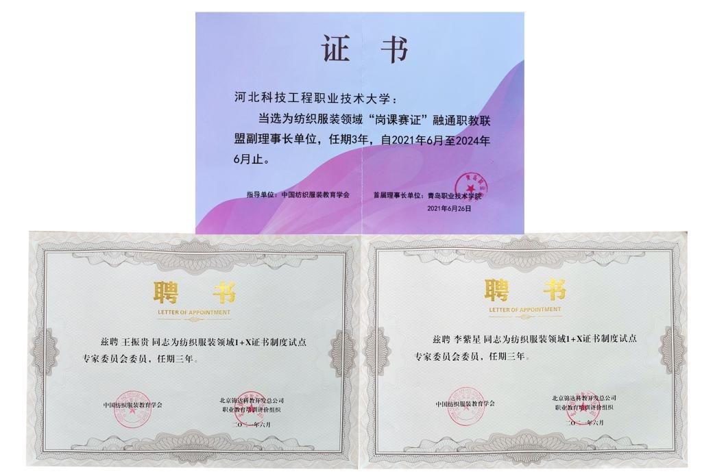 经过研讨,本次会议产生了纺织服装领域“1+X”证书制度专家委员会成员,纺织服装领域“岗课赛证”融通职教联盟成员。365官网当选为副理事长单位,王振贵老师、李紫星老师当选为专家委员会委员。