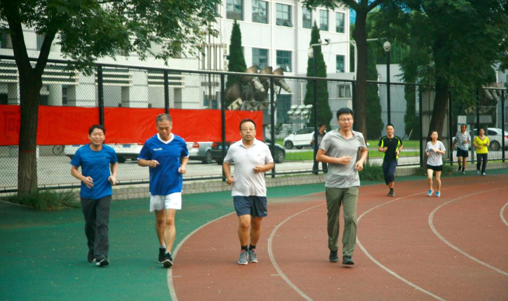 早晨6点,近50名教职工晨跑爱好者,踏着清晨第一缕阳光,齐聚在绿草如茵的操场上。他们稍作热身,起跑的口令声响起,大家迈开矫健的步伐,奔跑在红色跑道上。学院党委书记刘彩琴也加入到队伍中来,给参加活动的人带来了极大鼓舞,大家跑得更加有力量,速度也明显加快。跑步过程中,老师们还不忘互相加油鼓劲。最终,参与活动的教职员工全部都顺利完成了5公里的跑量。