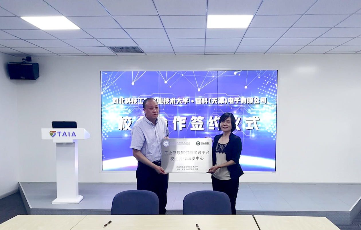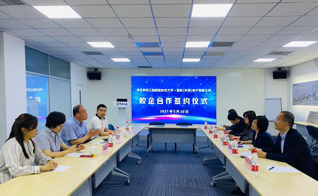 5月20日下午,365官网领导刘卫红、科技发展中心主任王傲冰、电气工程系主任陈丽等一行6人赴宜科(天津)电子有限公司(简称宜科)参加双方校企合作签约仪式。