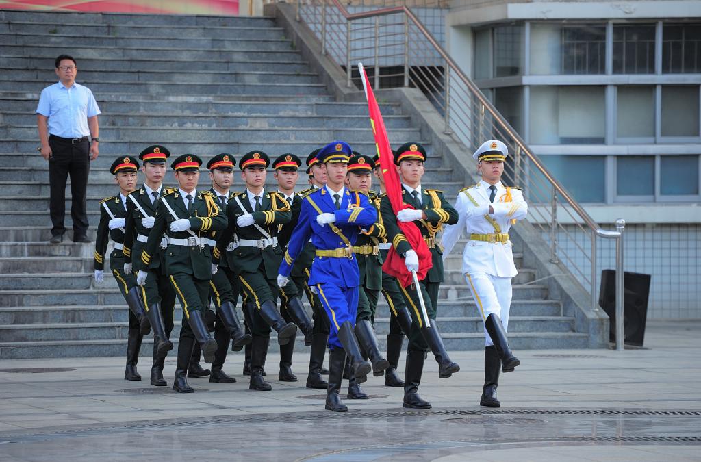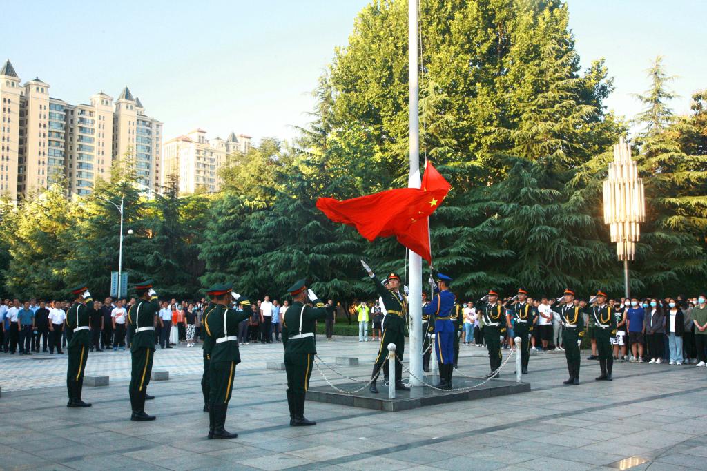 “升国旗,奏唱国歌!”9月3日,中国人民抗日战争暨世界反法西斯战争胜利75周年纪念日,新学期第一课从升国旗开始。学院东西校区师生同时升国旗,用一场别开生面的“国旗下思政公开课”迎接疫情后的新学期。