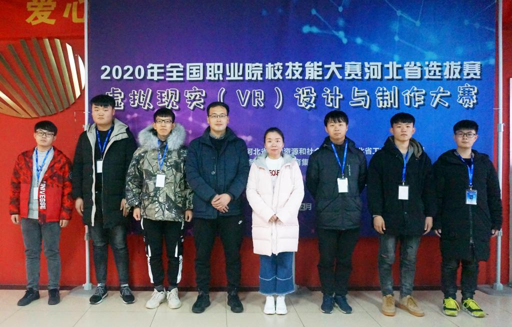 其中,丁莉和徐振立老师带领参赛队12月6日赴石家庄职业技术学院参赛,张卓雨、张宇明和王清山3名学生组成的代表一队,张文龙、岳子龙、崔铭杨3名学生组成的代表二队,在参加虚拟现实(VR)设计与制作大赛的23支代表队中脱颖而出,获得团体第一名、第二名的好成绩,荣获省赛一等奖。成功入选国赛。