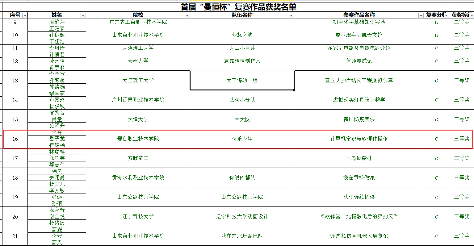长期以来,信息工程系秉持“证赛双驱动、内外两途径”的人才培养模式。通过参加本次大赛,彰显了以赛促教、以赛促学的教学成果。信息工程系将持续围绕虚拟现实产业链的关键环节,加强产学研合作,并把VR企业中成熟应用的虚拟现实关键技术进行教学转化,努力探索培养一批高技能虚拟现实人才。