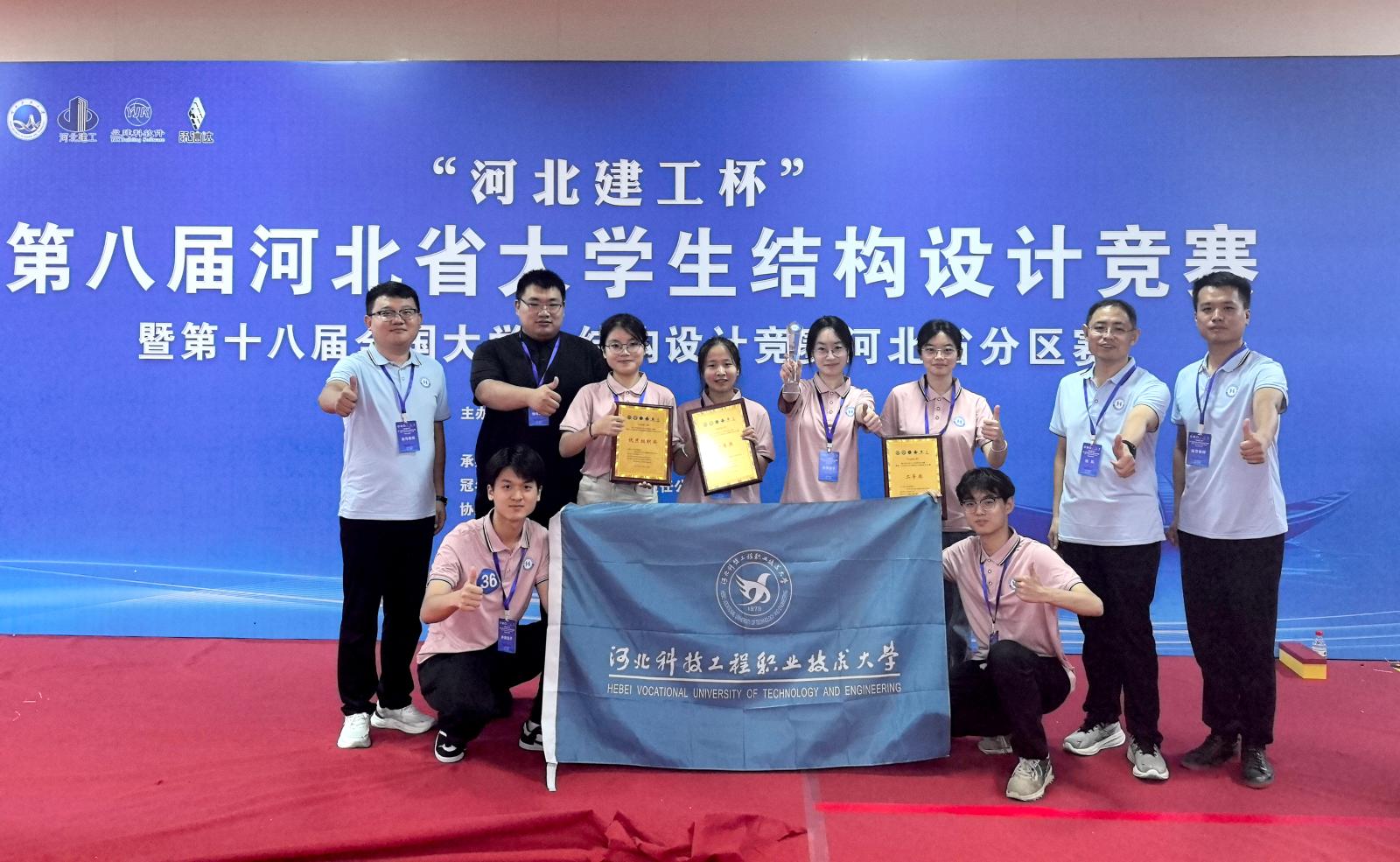 近日,由河北省教育厅、河北省高等学校土建类教学指导委员会主办,河北科技大学承办的2025年“河北建工杯”第八届河北省大学生结构设计竞赛暨第十八届全国大学生结构设计竞赛河北省分区赛圆满落幕。365官网建筑工程系选派的两支参赛队伍(“德能队”和“敏行队”)表现卓越,斩获一等奖1项(一等奖第一名晋级国赛)、二等奖1项,是365官网在该赛事中的历史最佳成绩,学校荣获“优秀组织奖”。