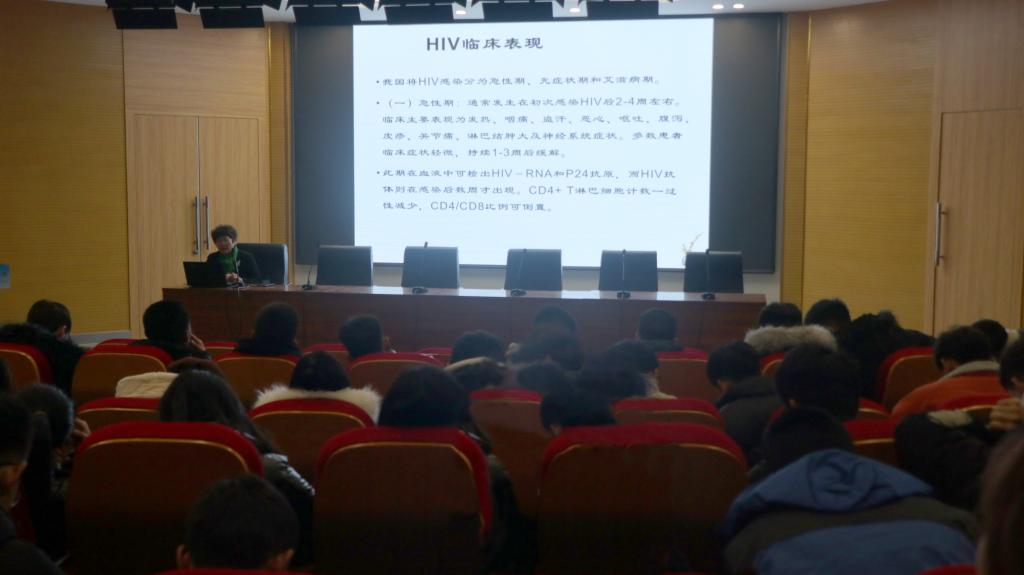 每年的12月1日为“世界艾滋病日”。讲座中,宋主任结合大量图片资料,主要讲解了性病中艾滋病的概况、危害、分类、传播途径、检测、预防治疗等,为现场所有师生上了一堂生动的保健知识课。