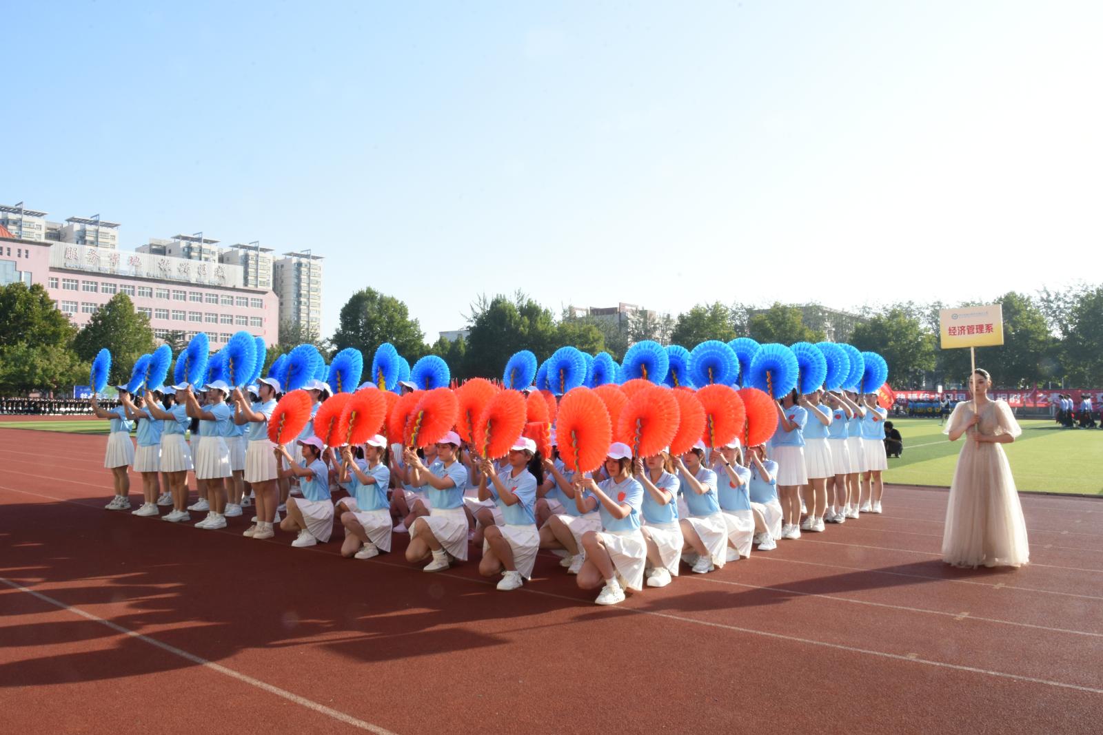 运动青春庆华诞,盛世欢歌奏华章。开幕式上,国旗护卫队步履铿锵,如劲松挺立,护送国旗、校旗迎风而行。各系部运动员方阵紧随其后,他们身着色彩鲜艳服装,踏着动感十足的音乐节拍,舞动着手中的花球、花伞,时不时变换出整齐划一又创意十足的队形,仿若灵动的科工大画卷徐徐展开。一声声震彻云霄的口号,似战鼓擂响,为祖国庆生;一个个寓意十足的造型,薪火相传,与国同庆,彰显着科工大学子热血爱国、矢志担当、昂扬奋进的精神气魄。