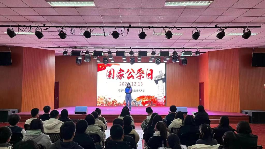 活动开始,学生代表以深情地朗诵表达了科工大学子对南京大屠杀逝去的30万同胞的沉痛悼念。随后,学生代表集体观看了《金陵十三钗》,通过观影让大家更加身临其境了解南京大屠杀。观影结束后,同学们集体宣誓。