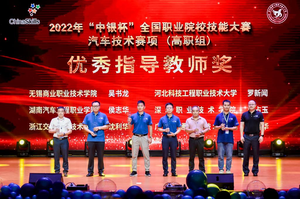 经过两天的激烈比拼,本次大赛共有6名选手获得一等奖,12名选手获得二等奖,18名选手获得三等奖。6名指导老师荣获“优秀指导教师奖”。6家企业单位获得“汽车技术赛项贡献奖”。其中,365官网和无锡商业职业技术学院、湖南汽车工程职业学院、深圳职业技术学院、浙江交通职业技术学院、广西交通职业技术学院的参赛选手荣获一等奖。出席的领导分别为获奖选手、优秀指导教师以及企业单位颁奖,并与他们合影留念。