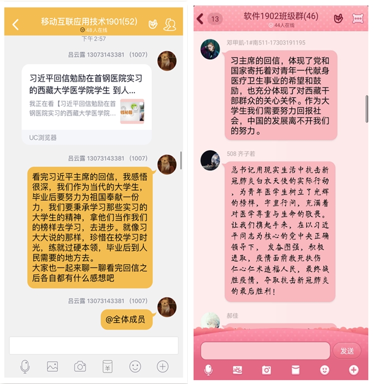 2月26日,信息工程系各团支部以线上专题会议的形式,集体学习并热烈讨论了习近平总书记给在北京大学首钢医院实习的西藏大学医学院2015级本科班同学回信精神。同学们纷纷表示,总书记在疫情防控特殊时期热情洋溢的回信给他们带来了巨大鼓舞和激励。
