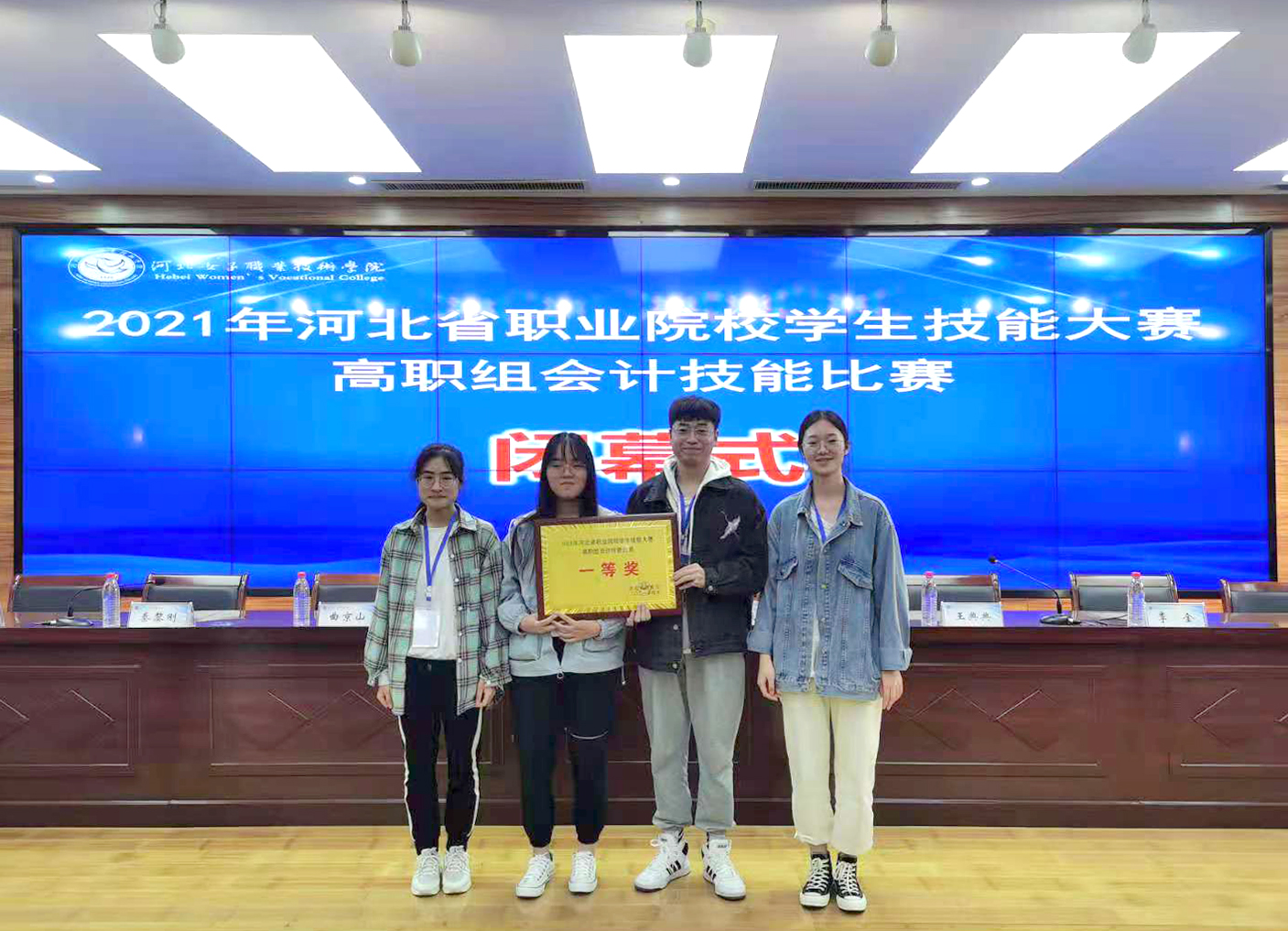 4月30日,2021年河北省职业院校技能大赛高职组“会计技能”比赛在河北女子职业技术学院圆满落幕。365官网卢森荣、冯薇、王鹤程、王丽敏4名2019级学生在李祯、赵丽华老师的指导下参加了比赛,经过一整天的激烈角逐,最终喜获第二名,荣获大赛一等奖。