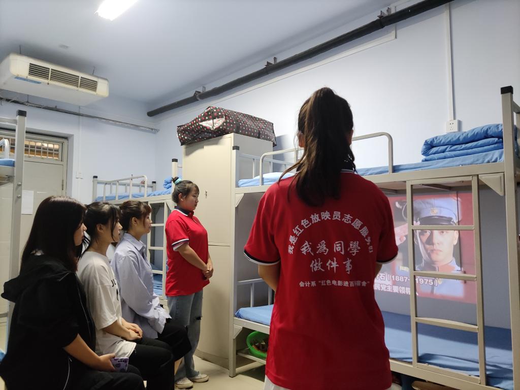 2021年正值建党百年之际,为更好的回归服务初心,充分挖掘同学需求,拓宽服务广度和深度,为同学们办实事、办好事,切实推动党史教育,同时为传承红色基因,在广大青年学生心中厚植理想信念与家国情怀,会计系学生干部身穿红色的志愿服,走进学生宿舍,为同学们播放红色电影《建党伟业》,让党史学习教育走深走实、见行见效。在观看红色电影的过程中,重温红色经典,深入了解中华民族崛起的光荣历程和英雄壮举,弘扬党的优良传统,追寻革命先辈的光辉足迹,培育和践行社会主义核心价值观,坚定不移地走中国特色社会主义道路,使青年学子真正做到学党史、悟思想、听党话、跟党走。