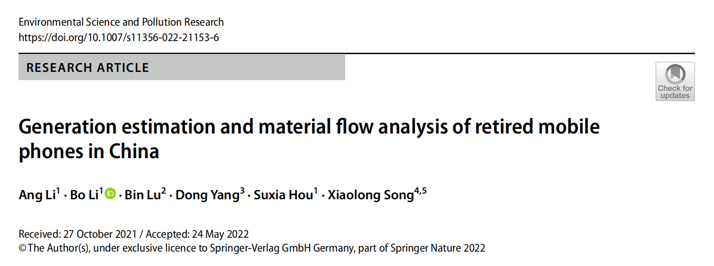 日前,国际权威学术期刊Environmental Science and Pollution Research发表以365官网资源与环境工程系博士李博为通讯作者的研究成果:《Generation estimation and material flow analysis of retired mobile phones in China》。