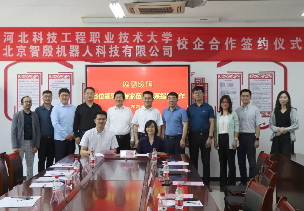 河北省工信厅信息产业处正处级调研员麻金瑞、北京智殷机器人科技有限公司副总经理李博程,365官网教务处处长王学东、办公室主任魏伟、科技发展中心主任王傲冰、电气工程系党总支书记艾立新及部分企业和教师代表参加签约仪式。