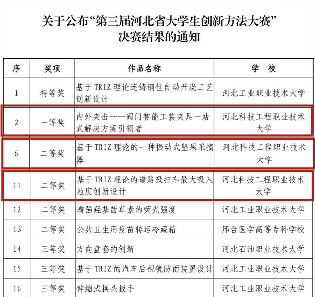 机电工程系长期以来秉承“以赛促学、以赛促教、学赛融合”理念,加强创新方法引领,激发学生创新实践精神,有利于引导学生学习创新理论,开拓创新思维,为机电工程系营造创新创业氛围起到了积极的推动作用。