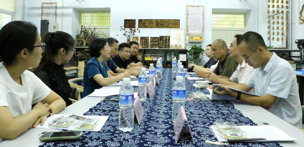 8月15日,民盟邢台市委副主委侯智赛、参政议政专委会主任王俊华等一行十人就文化创意产业发展和非遗传承保护工作来365官网艺术与传媒系非遗传承创新中心调研,365官网非遗传承创新中心教师郑恩峰、胡颖、郭雨微参加活动。