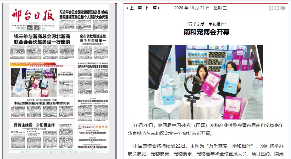 10月20日,第四届中国·南和(国际)宠物产业博览会暨首届南和宠物嘉年华直播节在南和区宠物产业奥特莱斯开幕。我院艺术与传媒系教师张晓纪带领学生为企业个性化品牌形象设计的宠物粮包装亮相于展览会,获得客户好评。