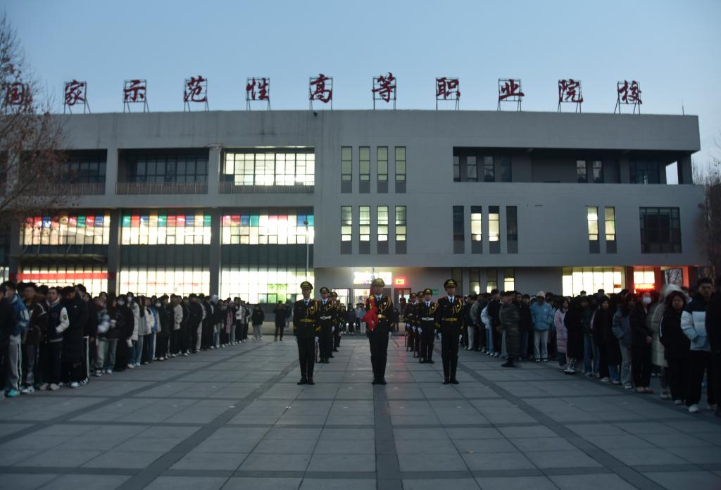学校领导、老师、辅导员代表和全体学生参加升旗活动。