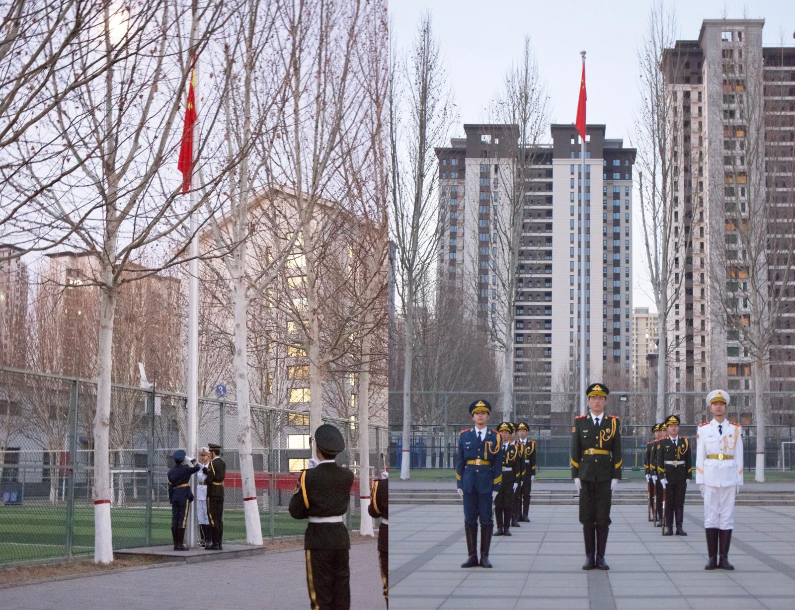 2月17日清晨,学校在东西校区同时举行2025年春季学期开学升旗仪式。校领导与6000余名师生代表共同见证五星红旗在晨光中冉冉升起,以昂扬姿态开启新学期。