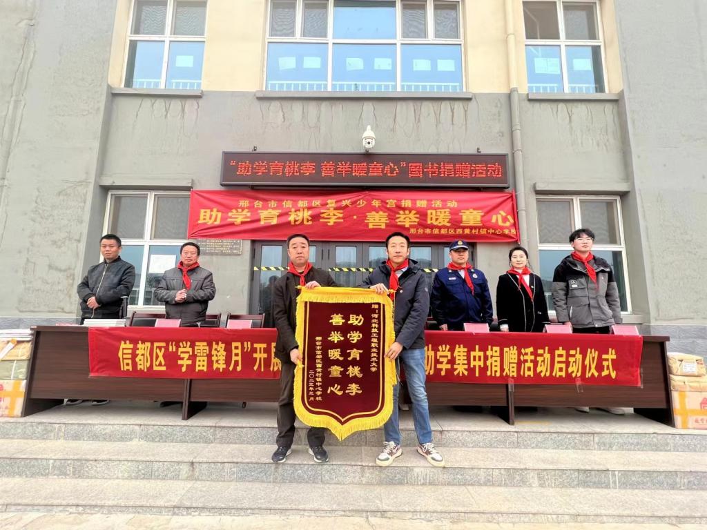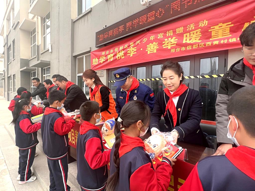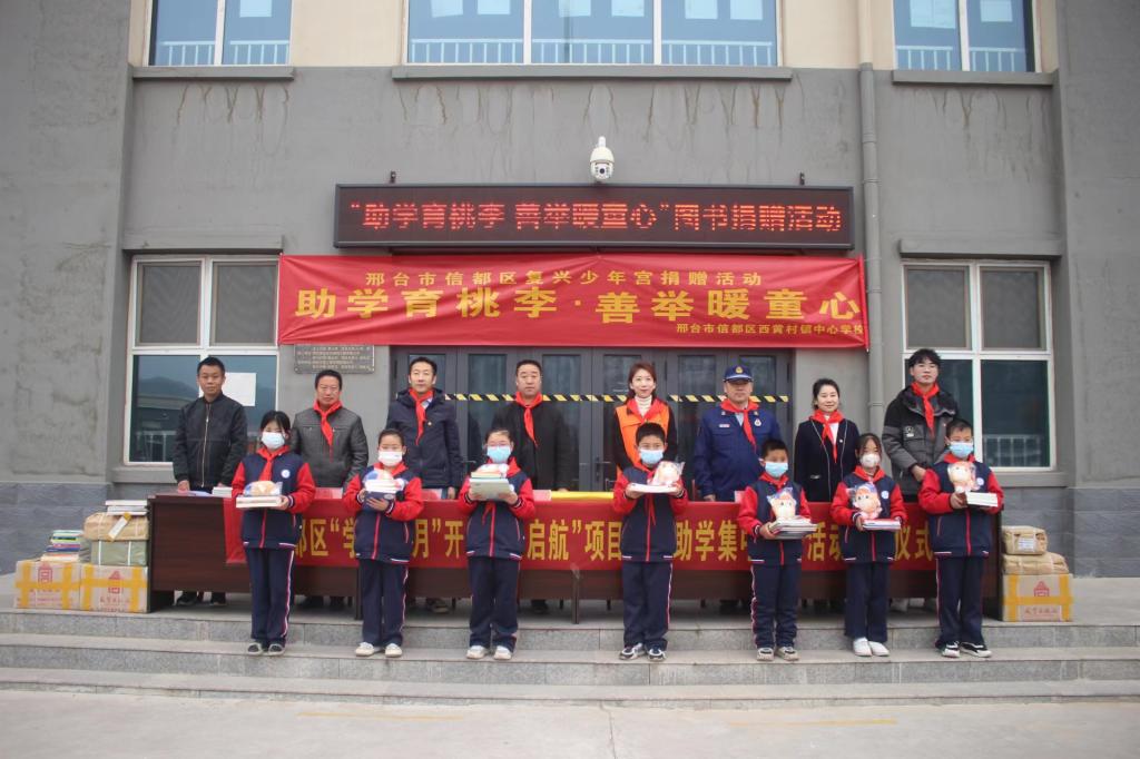 春意渐浓,书香氤氲。3月16日上午,学校团委联合邢台市助学公益协会、信都区青志协、钢铁北路消防救援站等单位共同开展“捐书助教·共沐书香”活动。此次活动共向西黄村镇中心学校捐赠价值约1万余元的书籍和玩具。邢台市助学公益协会副会长刘甄钰、秘书长马硕、西黄村镇中心学校党支部书记、校长李英军、学校团委副书记李奕聪、曾姝等共同参与本次捐书仪式。