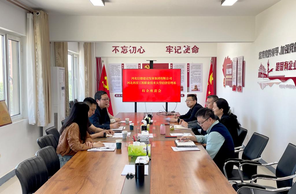 为贯彻落实访企拓岗专项工作,拓宽就业渠道,进一步深化与本地企业的合作,4月24日,经济管理系党总支书记李宁、系主任王文龙带领相关教师一行赴信都区河北信德建设发展集团有限公司走访调研,区国有企业领导小组组长马梦芹、集团董事长张小磊等人参加座谈。