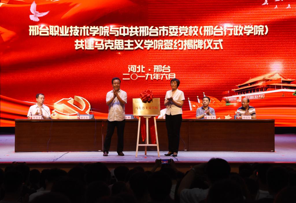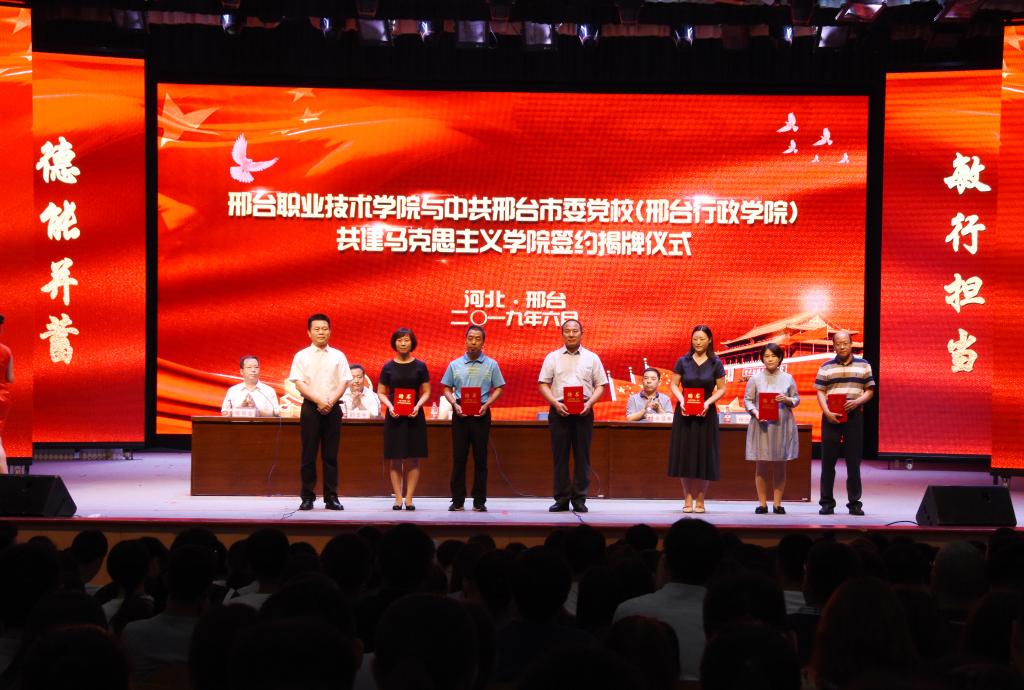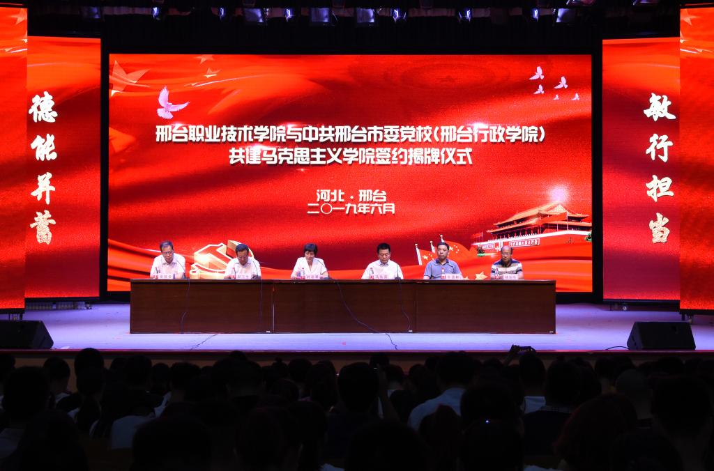 6月26日,我院与中共邢台市委党校(邢台行政学院)共建马克思主义学院签约揭牌仪式在我院红星礼堂举行。共建双方主要领导、中层干部、思政课教师、学生辅导员、学生代表,以及在邢兄弟院校马克思主义学院相关负责人1500余人参加了签约揭牌仪式。学院纪委书记张双会主持大会。