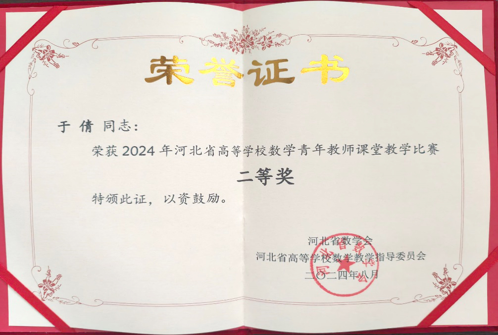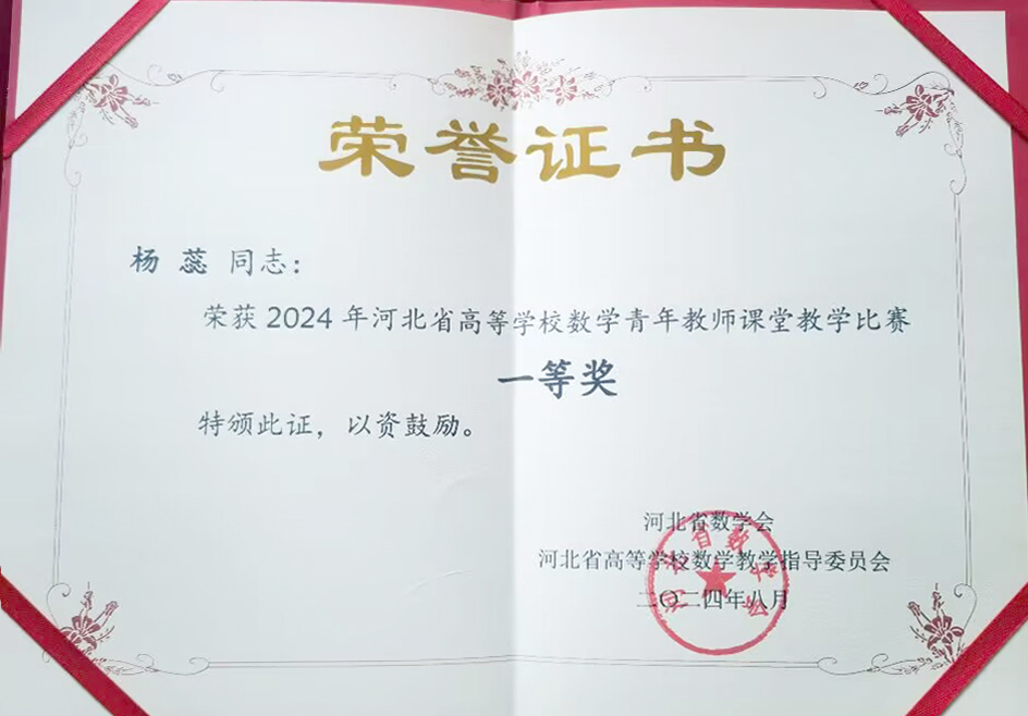 8月3日至5日,由河北省数学会、河北省高等学校数学教学指导委员会主办,河北师范大学承办的河北省数学会2024学术年会暨河北省高等学校数学教学指导委员会会议在石家庄召开。365官网基础部数学教研室主任于倩带领教师杨蕊、李悦共同参加此次会议,并由青年教师杨蕊、于倩作为代表参加2024年河北省高等学校数学青年教师课堂教学比赛,分别荣获一等奖和二等奖,