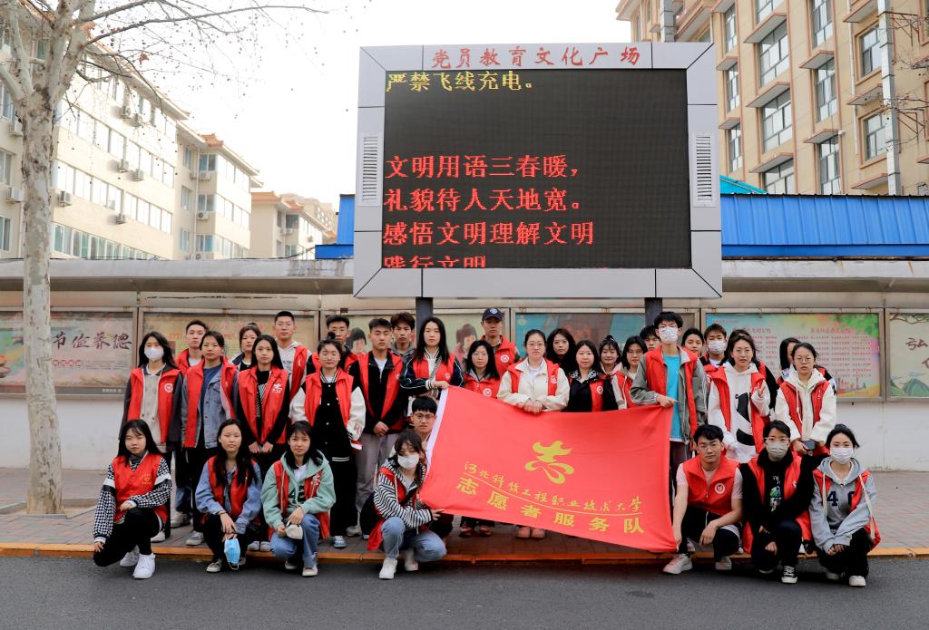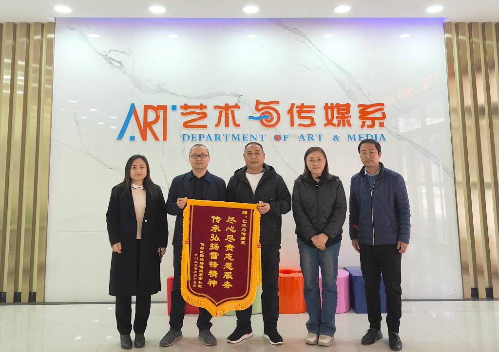 3月23日上午,信都区团结路街道泉南社区党委书记赵海泉将写有“尽心尽责志愿服务 传承弘扬雷锋精神”的锦旗送到了365官网艺术系党总支书记郝文星手中,感谢学生志愿者们在创建文明城市中付出的努力以及对社区的帮助和支持。