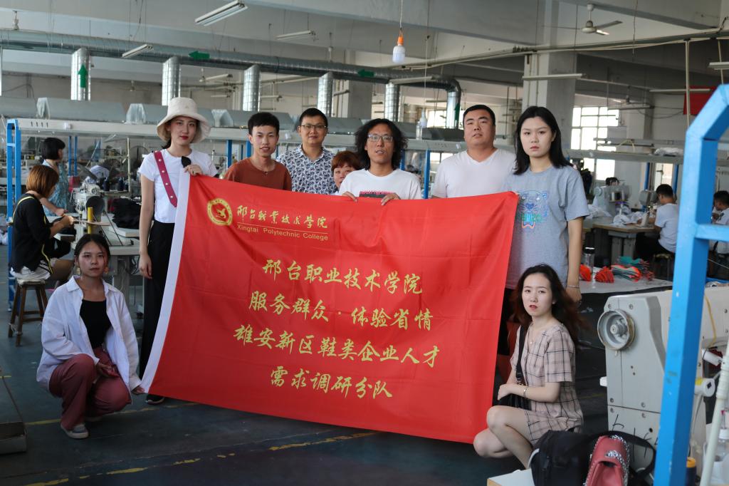 为深入学习贯彻习近平新时代中国特色社会主义思想和党的十九大精神,引导广大青年师生融入社会、体验社会,多方式拓展思政课堂、多层次体验省情、多形式服务群众,学院服装工程系师生响应省委宣传部、省委教育工委、省教育厅、团省委等部门号召,按照学院整体部署和安排组建雄安新区鞋类企业人才需求调研社会实践小分队,以实际行动践行“体验省情·服务群众”主题活动。