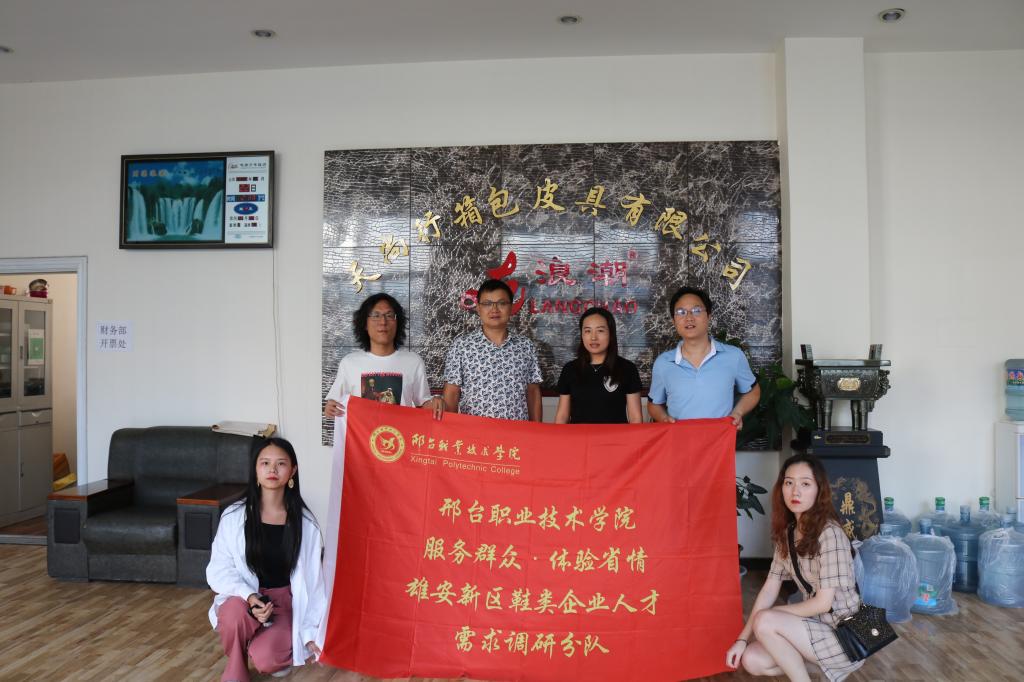 随后,小分队先后奔赴河北稳步鞋业有限公司、顺利鞋楦厂、天尚行箱包皮具有限公司、和道国际箱包交易中心等地调研,并分别与上述公司负责人进行座谈。小分队将学院各项情况对企业负责人进行了深度介绍,企方纷纷表示愿意与学院建立长期的产学研合作。其中,天尚行箱包皮具有限公司总经理兼白沟新城箱包进出口贸易协会会长李红伟表示愿为校企合作发挥自身作用。通过座谈与参观,小分队对雄安新区的整体鞋靴、箱包皮具企业现状、设计研发、生产技术有了更为深入、直观的了解。