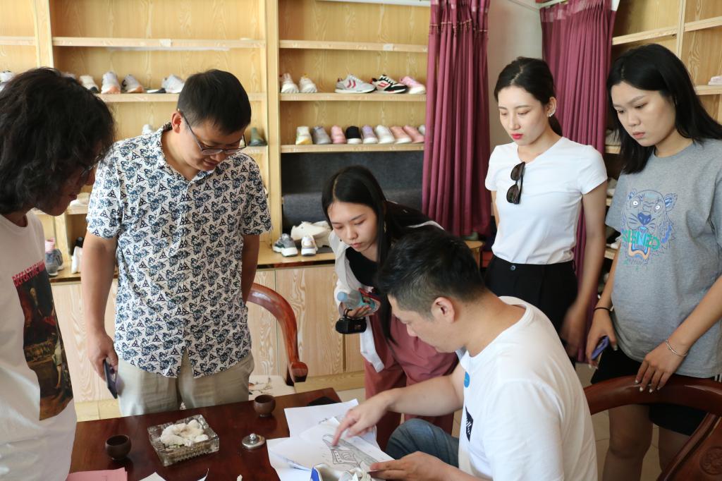 8月19日,小分队师生在系党总支副书记辛东升的带领下,奔赴雄安新区安新县中低档鞋靴产业聚集地三台镇进行人才需求调研。小分队师生首先来到系校企合作企业——金宏康鞋业有限公司,围绕雄安新区区域优势、当前鞋企发展瓶颈、未来鞋企发展趋势与该企业负责人吴伟康进行了深入的座谈。吴伟康总经理结合公司品牌设计理念、设计方案、样品制作等方面与师生们深入探讨,并结合自身人才需求提出才培养模式的中肯建议。小分队现场就如何进行转型升级提供了可借鉴的行业经验。座谈结束后,在相关负责人的带领下小分队到公司生产车间现场参观。