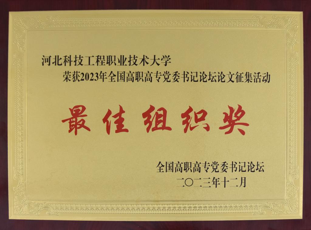 在全国高职高专党委书记论坛2023年论文征集活动中,共收到643篇论文参评。经评审,365官网共有17篇论文获奖,其中一等奖3篇,二等奖5篇,三等奖9篇。鉴于365官网提交论文数量多、质量高,被评为2023年度论坛论文征集活动最佳组织奖。这是365官网连续第五年获此殊荣。大会现场为最佳组织奖和优秀论文奖代表颁发证书。