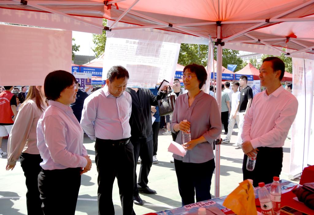 学校党委书记刘彩琴、副校长褚建立和邢台市就业服务中心、信都区人力资源和社会保障局、经开区社会事务局相关领导到现场指导工作。刘彩琴在现场与用人单位和毕业生亲切交流,细致了解人才需求,听取用人单位对365官网人才培养、专业建设等方面的意见建议,同时鼓励毕业生明确自我定位,怀揣家国情怀,务实进取,积极就业。