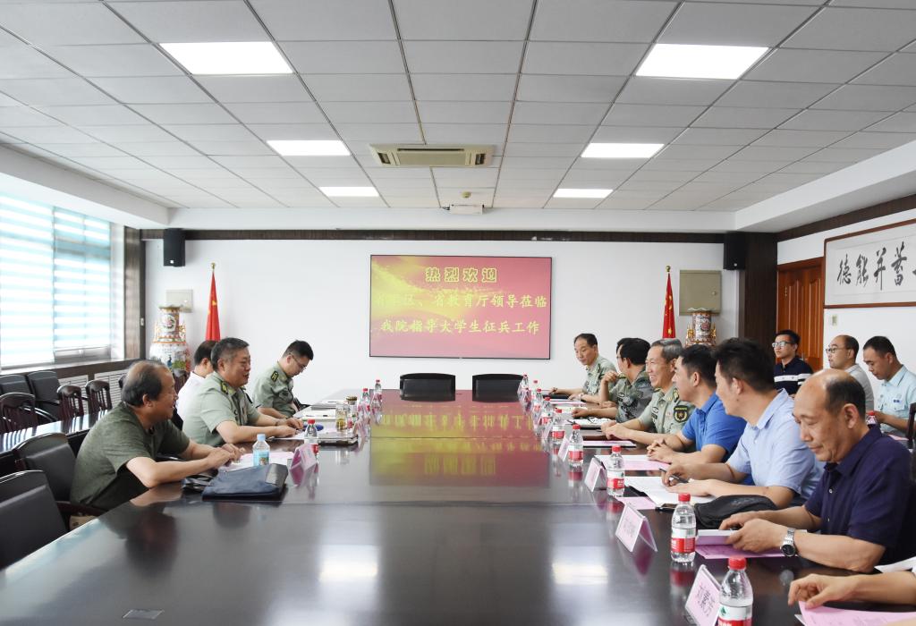 6月18日下午,省军区动员局局长李克双、省教育厅就业指导中心副主任孙召伟,省医大三院原主任医师吴健,省军区动员局参谋郝晓鹏一行四人来我院督导检查大学生征兵工作。邢台军分区司令员陈恒远、动员处处长王首书、桥西区人武部部长刘斌、邢台市教育局师教科科长刘效峰及邢台市卫健委医政科副科长刘素芳陪同检查。我院副院长李贤彬、学生处副处长李磊及相关征兵工作人员参与迎检工作。