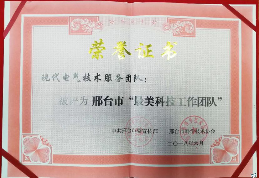 邢台市科技工作者座谈会于7月18日召开,邢台市委宣传部与市科协宣读了《关于授于邢台市最美科技工作者(团队)称号的决定》,我院现代电气技术服务团队荣获“最美科技工作团队”称号。