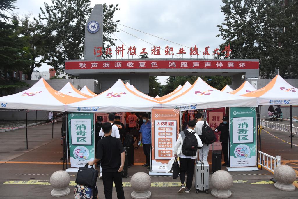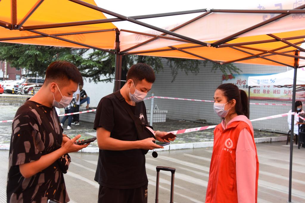 根据疫情防控要求,学校在返校现场设置了行李消毒、体温检测、查验健康码、核验身份等程序,安保人员、后勤人员、志愿者等引导学生排好队有序返校。学生需连续14天每日体温测量,到达学校后,学生凭健康码、近一周内两次核酸检测证明和14天健康登记表,在所属系部完成所有登记检查后,学生可返回宿舍。