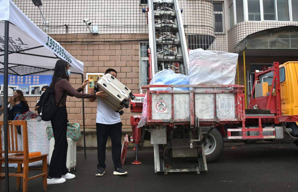 在宿舍区,学校对学生“花式宠爱”,专门派升降机帮助学生搬运行李。学生们将行李放在升降机上,就迅速被送上了楼,非常方便、省事。2020级视觉传达学生孙晴说:“学校这波‘硬核操作’,对于我们住在高层的女生非常友好,真的是非常暖心。”