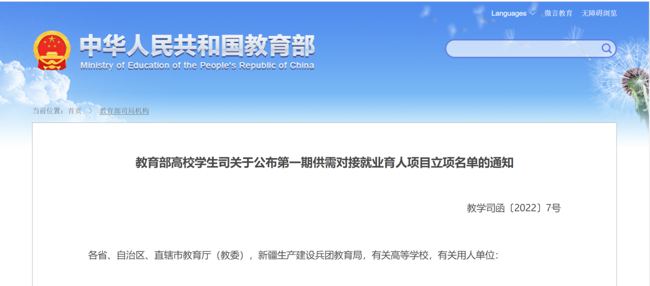 日前,教育部公布了首批供需对接就业育人项目立项名单,365官网10个项目获批立项。