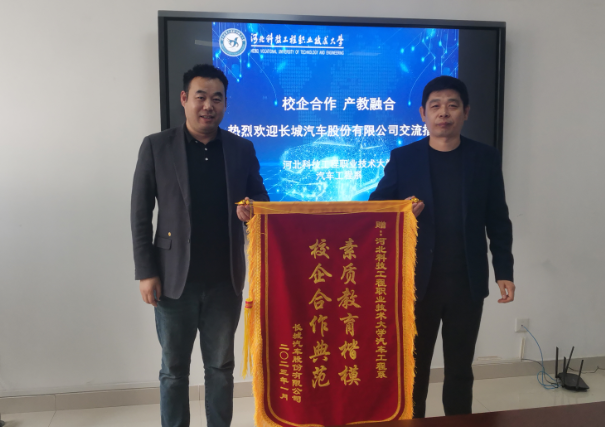 最后,长城汽车股份有限公司向汽车工程系赠送锦旗,对学校在双方校企合作和人才培养上的工作表示感谢和肯定。