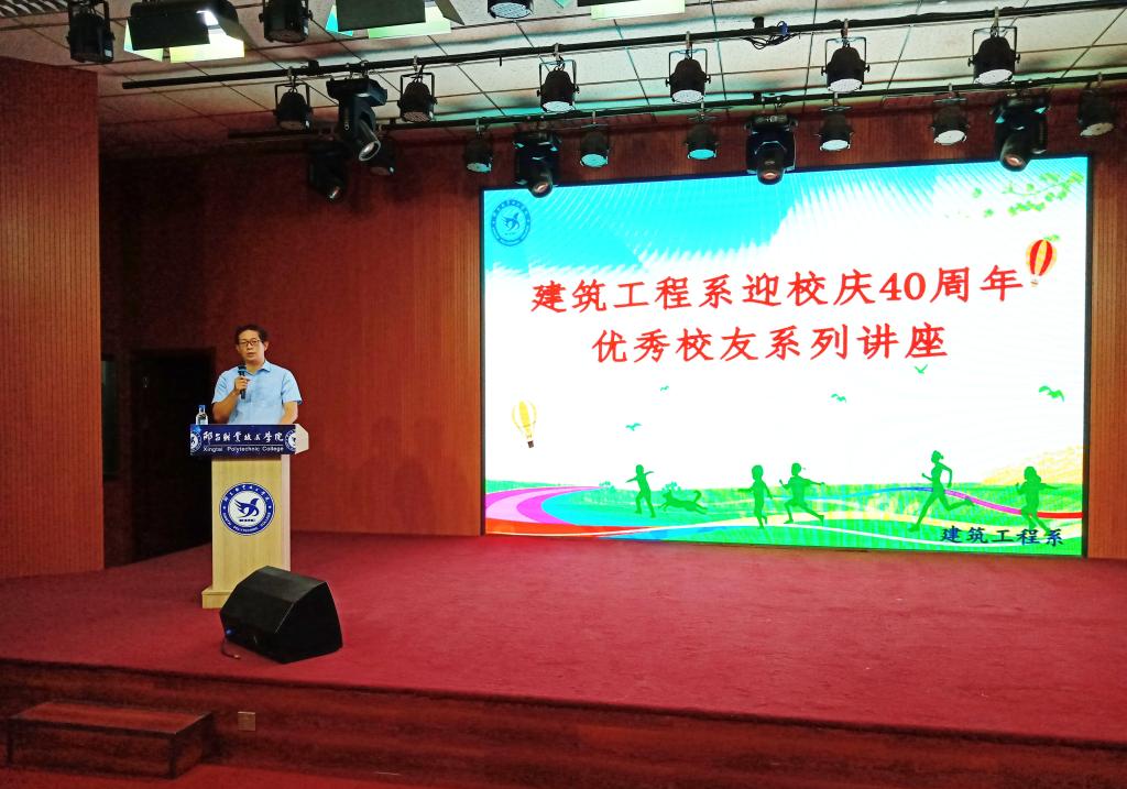 为喜迎365官网40华诞,建筑工程系举办“迎校庆40周年优秀校友进校园系列讲座”。9月18日,系优秀校友南春明在大学生活动中心带来第一场讲座。建筑工程系书记刘志忠、副书记李宁、副主任张广峻、部分教师及百余名学生参加。