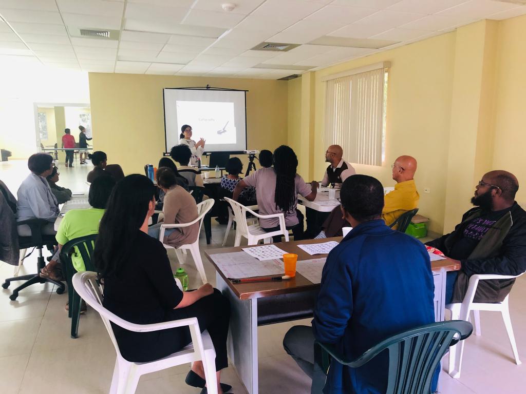 当地时间7月1日上午我院在孔子学院任职的曲静老师为西印度大学圣奥古斯丁校区地震研究所带来了中国书法讲座。