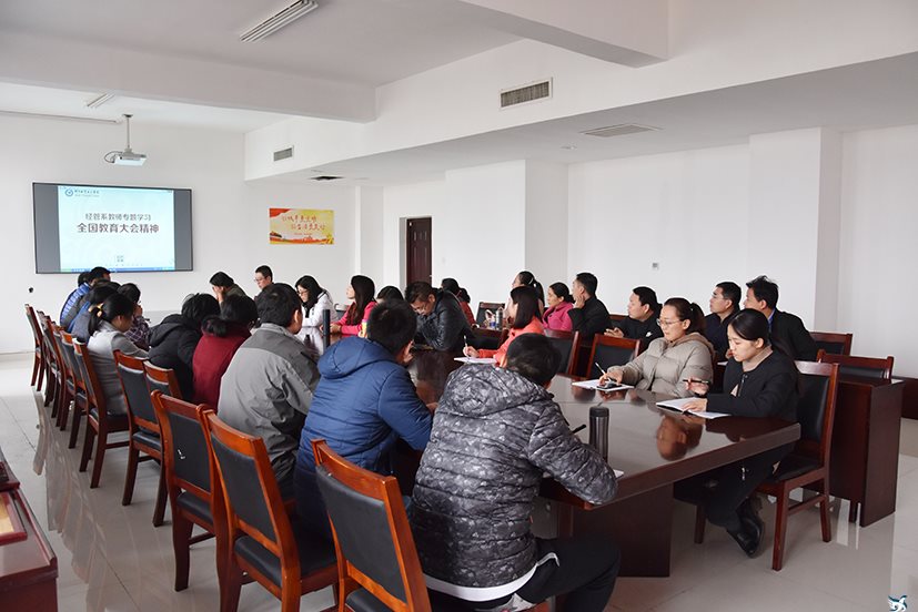 11月15日,经济管理系集中开展全国教育大会专题学习活动。活动由系书记刘京中主持,系主任马铧、副主任程振锋及经管系全体教师参加。