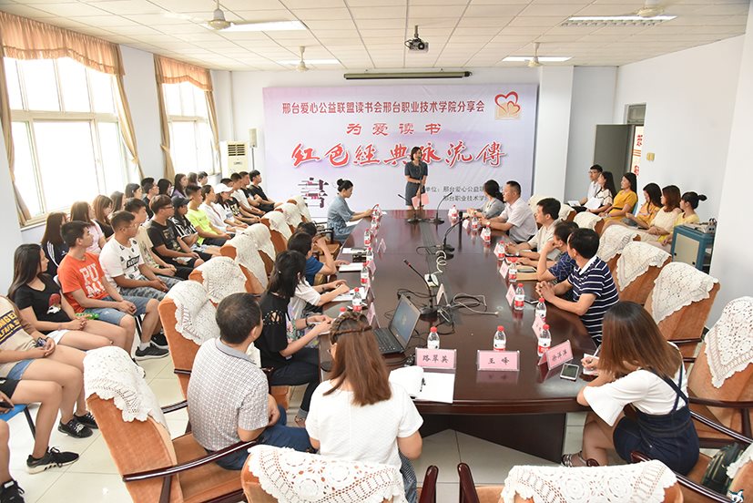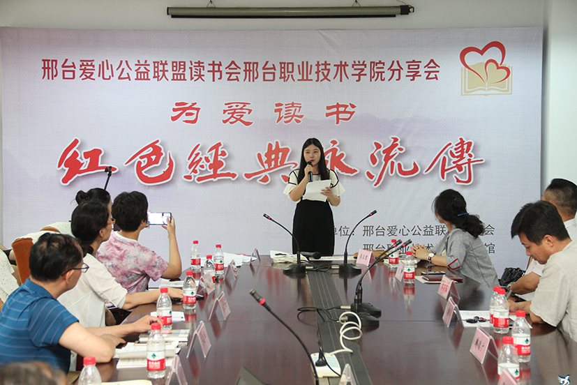 7月4日,由邢台爱心公益联盟读书会主办、学院图书馆协办的“为爱读书——红色经典咏流传”读书分享会在我院图书馆会议室举办。学院副院长刘卫红、邢台市爱心组织负责人、爱心人士和我院师生代表共70余人参加了活动。