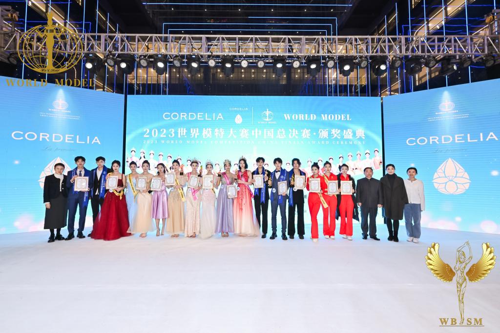 夏志燕(右十)和赵佳森(左三)在2023世界模特大赛中国总决赛颁奖现场