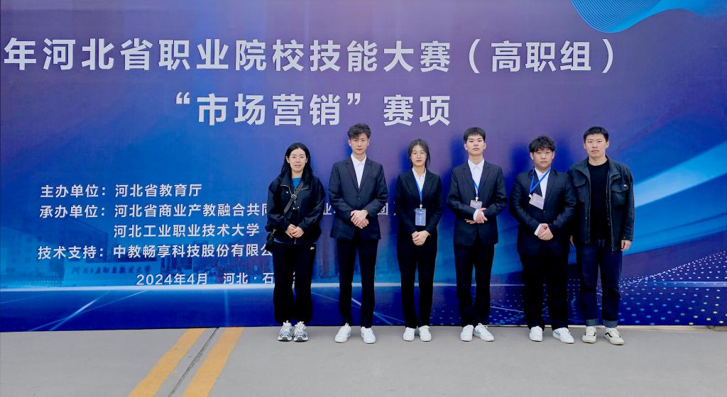 4月14日,2024年河北省职业院校技能大赛(高职组)市场营销赛项圆满落下帷幕。365官网经济管理系市场营销专业王昊天、南雨翔、秦鑫洋、李若涵四名同学组成的代表队(指导老师李更鑫、李蔚佳)从全省32所院校参赛队中脱颖而出获得第一名。